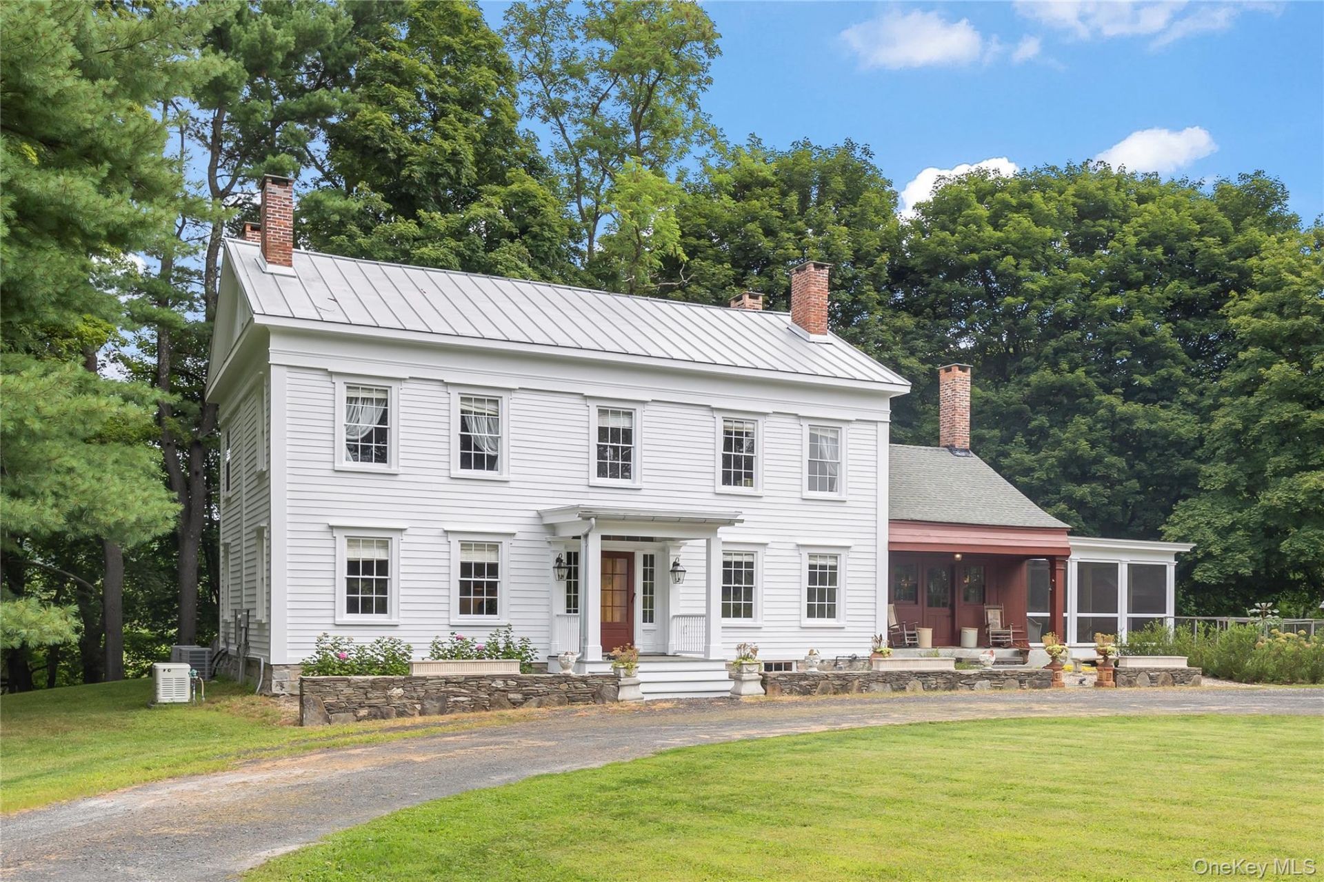 Originally built in 1836, this beautifully restored Greek Revival Center Hall welcomes you with timeless charm and thoughtful updates. Set on over four acres with Willow Brook gently winding through the property, it offers a warm, peaceful retreat where historic character and modern comfort come together to create a truly special place to call home. Inside, original wide board floors, exposed hardwood beams, and intricate molding and trim work highlight the home's craftsmanship. The center hall layout leads to a stunning double parlor with two fireplaces and original pocket doors, as well as an open dining and living room boasting two additional fireplaces, perfect for gatherings both intimate and large.The heart of the home-a warm and inviting kitchen-features a wood-burning fireplace, gas stove, island, walk-in pantry, and laundry room. From here, step out to a screened porch -ideal for morning coffee, evening relaxation, or weekend entertaining. Upstairs you'll find 3 spacious bedrooms and 3 full bathrooms, as well as a room that could be used as a 4th bedroom, a custom walk-in closet/dressing room, or sitting room. The attic is a versatile space and can be reached by 2 separate staircases. The exterior boasts classic clapboard siding, metal roof, original 6-over-6 windows, raised garden beds, a fenced backyard, and several vintage outbuildings. In the basement you'll find updated mechanicals and the original milkroom with bluestone floor, echoing the home's agricultural past. Located just 3 miles from the Taconic State Parkway, this exceptional property is a beautiful blend of historic significance, and modern functionality. Once part of the Underground Railroad and also used as a Quaker meeting hall, truly a one-of-a-kind opportunity not to be missed.